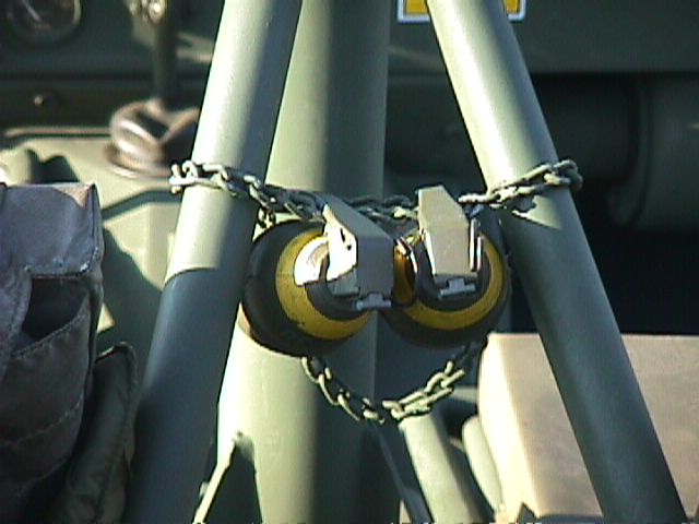 The chain and bracket lock the steering wheel and the transmission in gear.