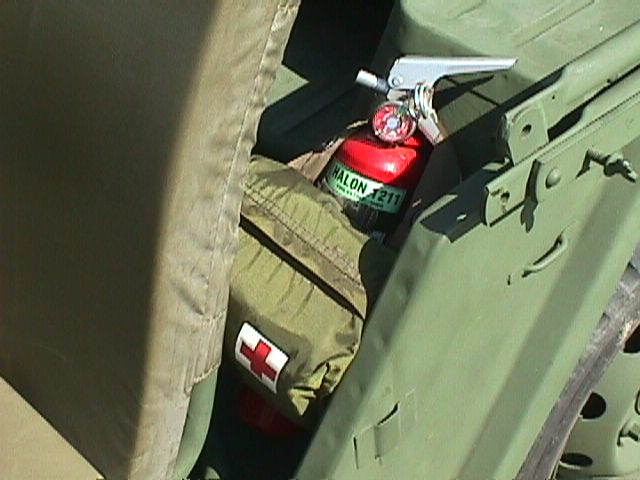 Standard Air Force issue Halon extinguisher and first aid kit.