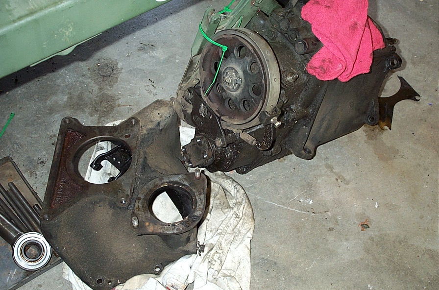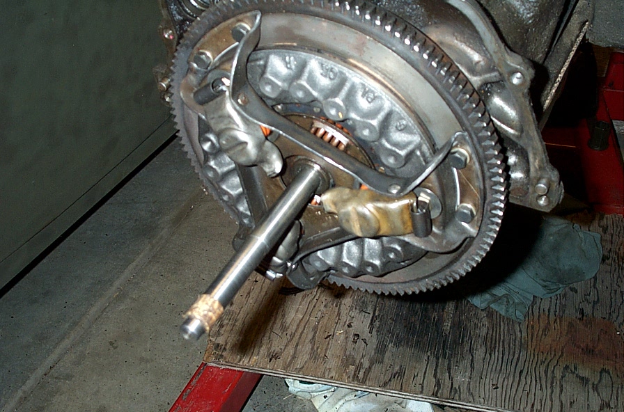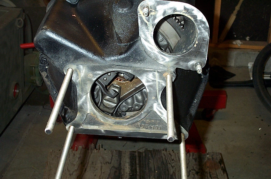 Bell housing back in place. The long bolts are more home made alignment tools for holding the transmission