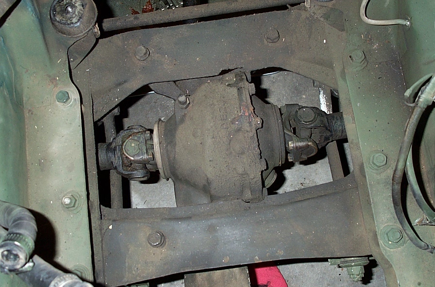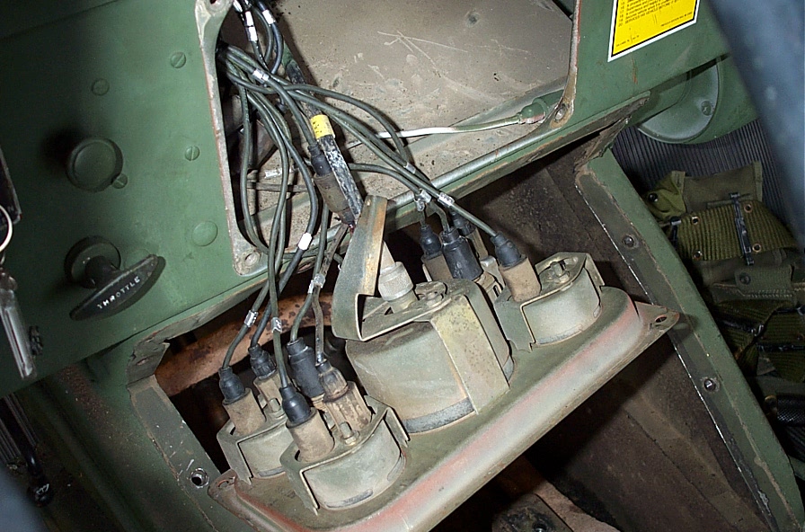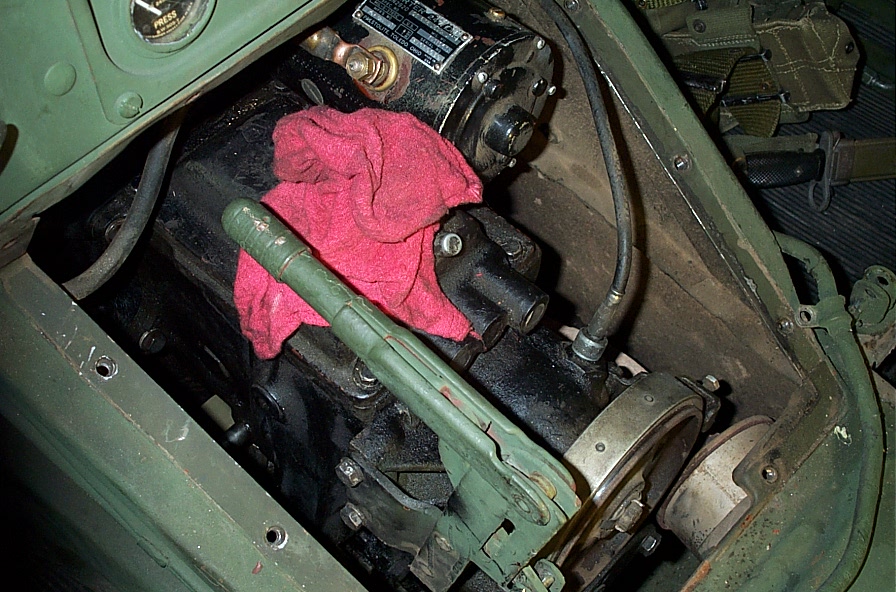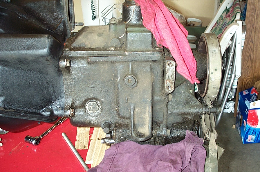 Transmission and starter as seen from the transmission tunnel, speedometer cable in place